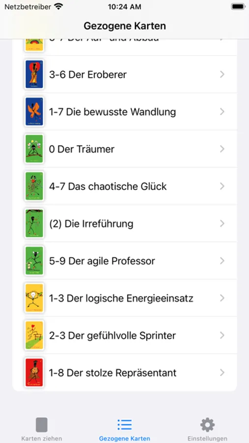 Du kannst alle gezogenen Karten im Nachhinein wieder aufrufen.