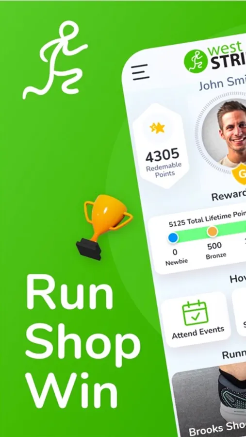 You're loyal. You shop local, stay active, and should get rewarded for it. We want you to be part of the West Stride Loyalty Program. It's simple and free, just download the app and login. Shop in the app or in our store and you'll earn reward points for every dollar you spend. You'll also get reward points for checking in at West Stride events. Then redeem those points for West Stride digital gift cards. Plus, track your lifetime point total to level up with reward achievements, bragging rights, and other perks.