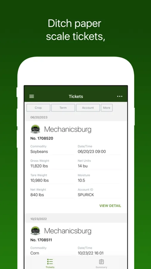 Scale Tickets: Easily access and filter scale tickets
