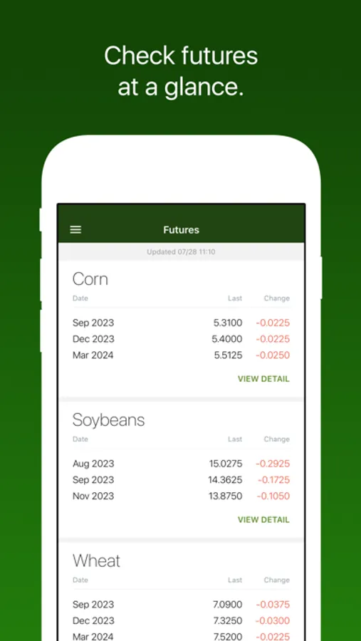 Futures: See Grains, Feed, Livestock, and Ethanol futures listed in order of your preference