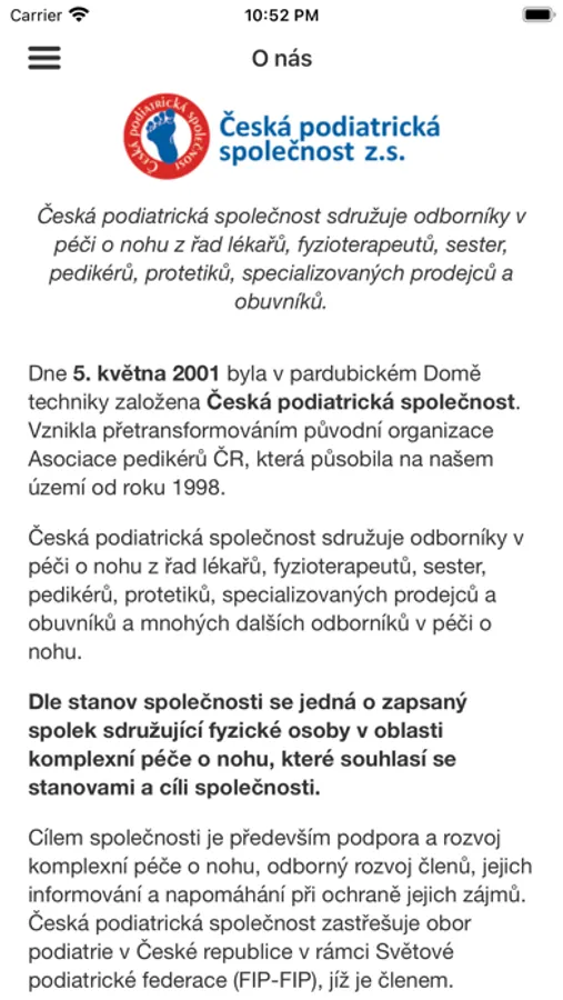 Česká podiatrická společnost sdružuje odborníky v péči o nohu z řad lékařů, fyzioterapeutů, sester, pedikérů, protetiků, specializovaných prodejců a obuvníků.