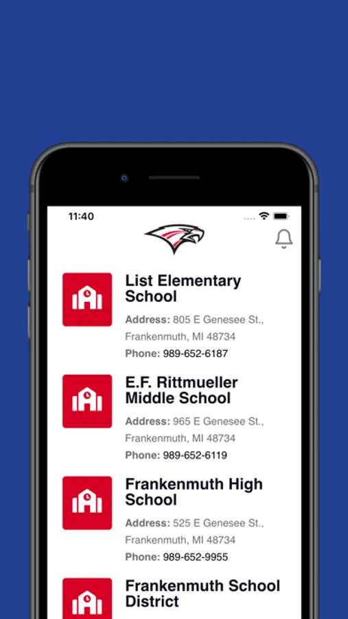 Stay in the loop with the Fmuth Eagles mobile app. It's easy to click and scroll through the daily calendar, school day schedule, receive special alerts, share school news, see menus, and access contact information. Go Eagles!