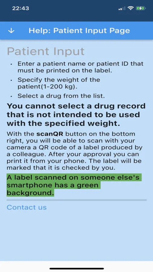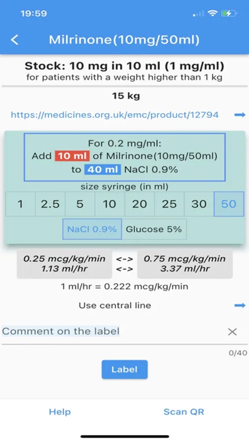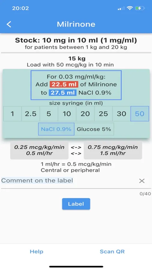 LabelSyringe will provide printed labels for the syringes that are prepared where you need them. The labels improve readability and contain a lot more useful information. But it will do more than that. Based on information that is stored in a centrally maintained database it will help with complex weight based dilutions, support double check procedures by using QR codes and keeps every preparation compatible with the drug dilution protocols that are approved on your department. This is done with the users smartphone and a cheap black and white printer.