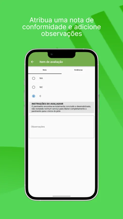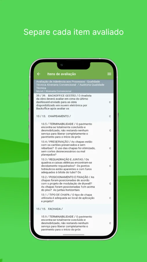 - Faça as avaliações de todos os aspectos necessários.