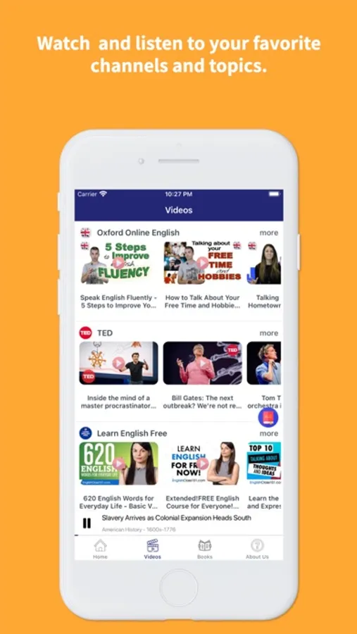 This app is designed to give you the best experience for practicing English. You can read, listen and watch lessons anywhere on your mobile devices. The content in the app is updated every day.