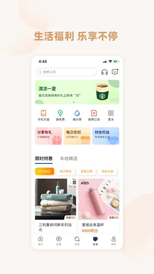 ●方便生活:缴话费、电费、水费、取暖费,一个APP就够了!更有热门餐厅、商超优惠券海量送。