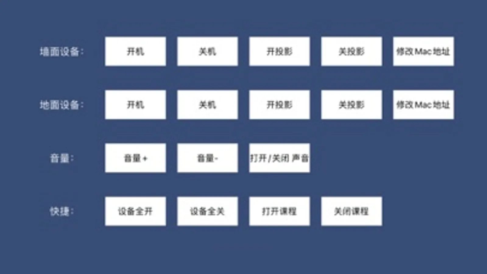 情景课堂智能中控应用作为一个客户端,可以通过UDP(UserDatagramProtocol)协议与情景课堂的软硬件的控制服务进行对接。可以通过中控管理一键控制设备和课程。
