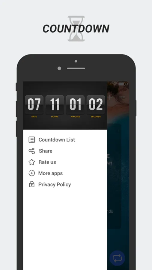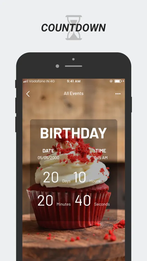 The countdown app Countdown to birthdays, Day count holidays, countdown widget an upcoming vacation, Event countdown like a wedding, days until the New Year, day countdown parties, event countdown like sporting events, daycount concerts and more.