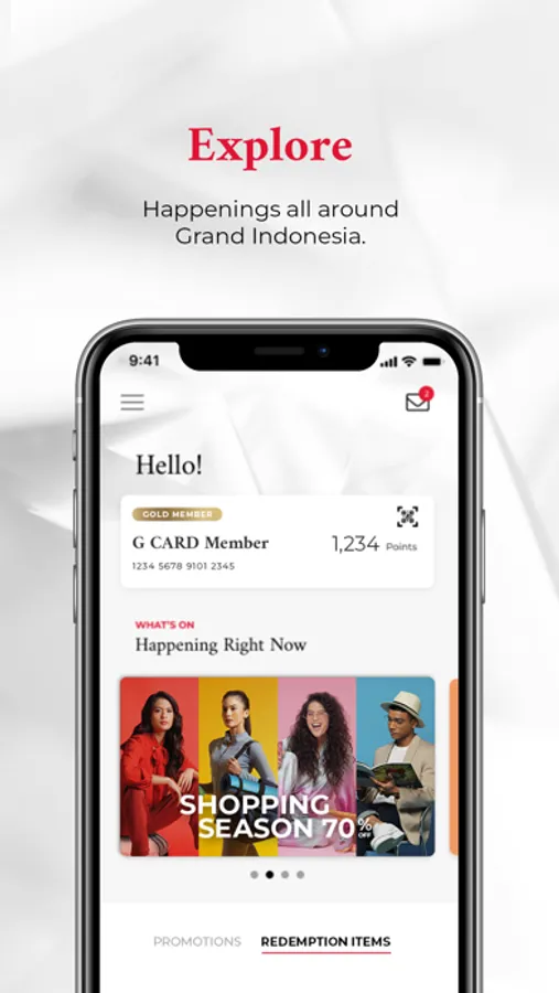One-stop lifestyle destination all in your hands. Explore all happenings in Grand Indonesia and discover exciting promotions and offers only for you. Shop and earn your G CARD point conveniently. Redeem an array of exclusive privileges, rewards through the simple & seamless experience.