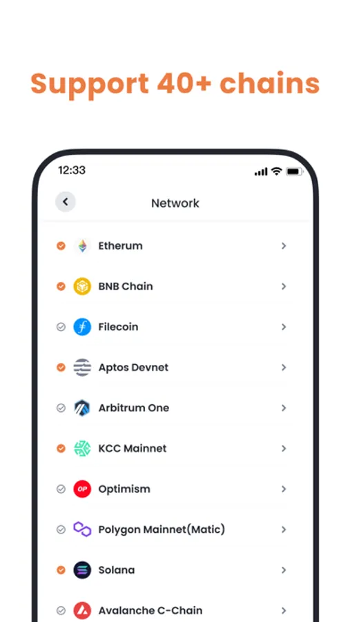 FoxWallet is a decentralized crypto wallet which supports 60+ chains such as Bitcoin, Ethereum, Aleo, Aptos, Filecoin, IronFish, SUI, Solana, BNB Chain, Arbitrum, Aurora, Avalanche, Boba, Celo, Cube, Conflux, Cronos, Evmos, Fantom, Gnosis, HECO, KCC, Klaytn, Metis, Moonbeam, Moonriver, OKC, Optimism, Opside, Polygon, Syscoin, zkSync, etc.