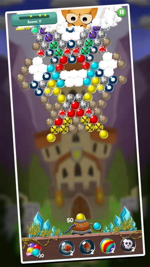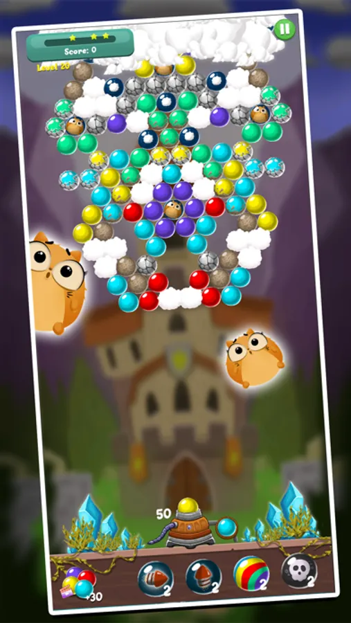Bubble Shooter: Magic Castle is an extremely interesting and challenging ball shooting game. You will enjoy a colorful journey in this ball shooting game. You hit the road and rescue the cats right away.