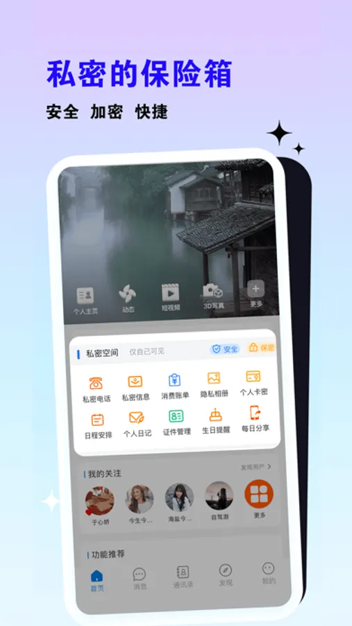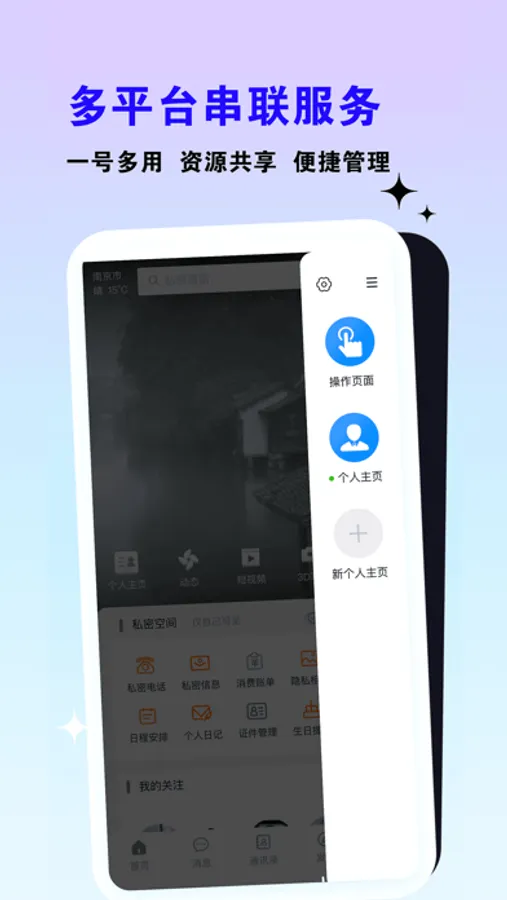 乙站是一款致力于打造专属于您个人的社交分享、常用工具及个人数据记录、管理平台。您可以通过选择身份来使用平台专门定制的模板,从而为您生成贴切的个人信息分享页面,完整展现您的个性特征。您可以方便使用平台为您提供的安全数据记录和管理工具,包括:私密通话、私密信息、消费账单、隐私相册、个人日记、证件管理、日程安排等。另外,您可以关注感兴趣的其他用户,浏览其最新动态,并可与其互动,点赞评论聊天等。您可以随时使用创作类的功能,记录下自己的所闻所思所想。您还可以方便地购买、分享平台提供的优质商品,满足您的日常生活需要。