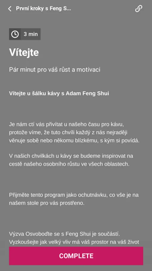 2) Čas pro duši - dejte každé ráno snídani vaší duši a dopřejte si prostor pro váš osobní růst. Přidejte se ke komunitě, sdílejte. Dlouhodobá motivace ke každodenním krokům vpřed. Osobní podpora od mentorů a ostatních členů. Feng Shui, spirituální nauky, rituály, praktické návody - vše dle aktuálních dní. Techniky z několika světadílů, zajímaví hosté - to vše každý den v 5 minutách u snídaně.