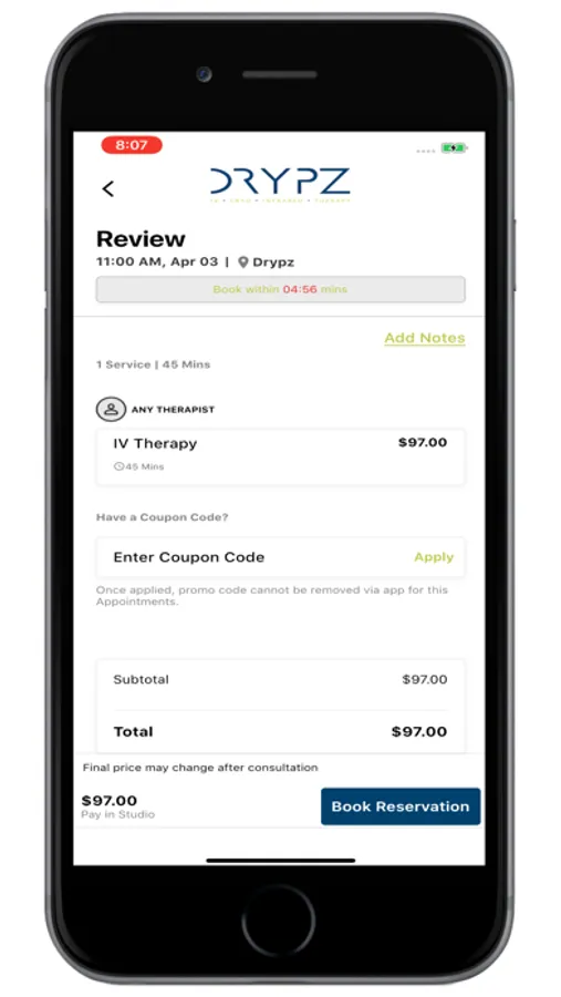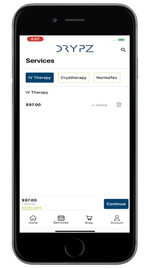 Use the DRYPZ app to discover your personalized experience to replenish, restore and recover- anytime, anywhere. Access to your customized account for all you medical spa needs including; booking your appointments, viewing your membership details, and much more!