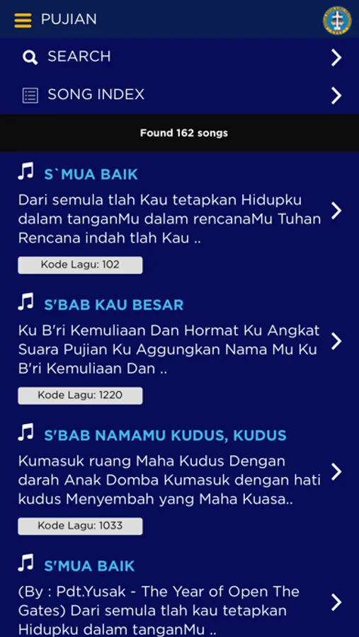 - Song lyric search to make user / church congregation easy to find worship song lyric quickly.