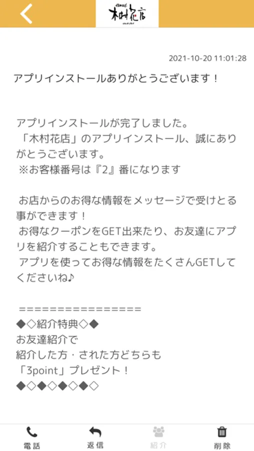 木村花店のアプリをSNSを通じてお友達に紹介する事ができます。