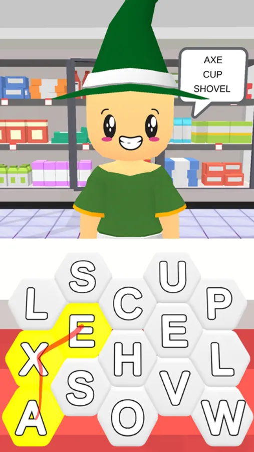 You work as a cashier in a store. Customers come to you with different lists of products. The buyer names a product, and you have to find and add this word in the field of letters.
