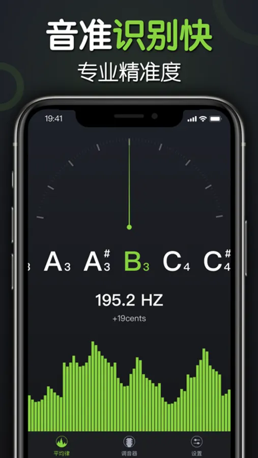 【多乐器支持】十二平均律自由调音,实时识别声音频率,轻松为所有乐器调节音高。