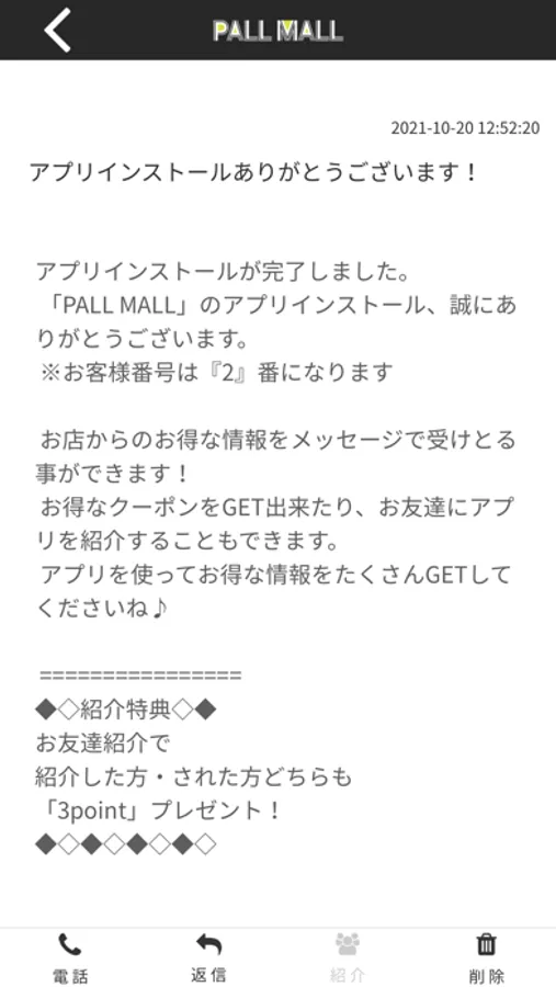PALL・MALLのアプリをSNSを通じてお友達に紹介する事ができます。