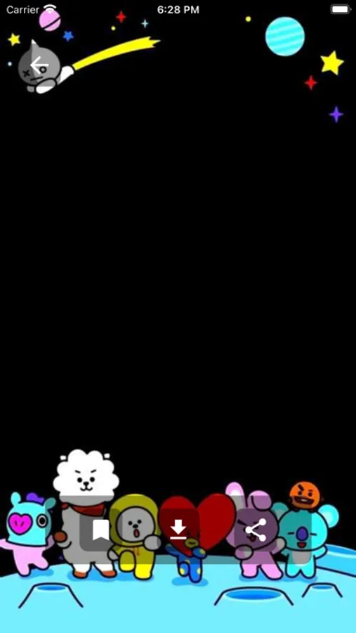 This Cute BT21 Wallpapers App allows you to save on your phone or bookmark for later use, save/download it to your phone and share the pictures waith your friends. Enjoy your favorite pictures every day on the screens of your devices!