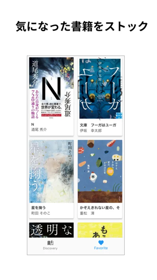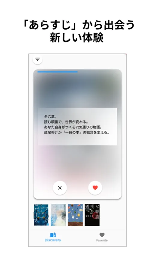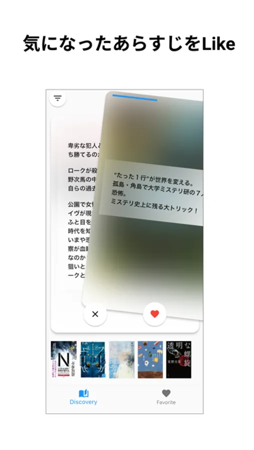 - タイトルや著者名が隠れた状態で、本のあらすじからお気に入りの本を探すことができます