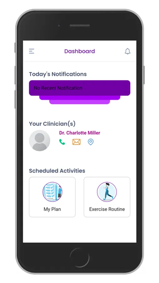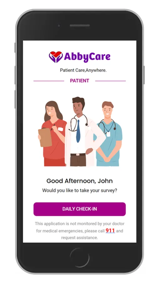 The AbbyCare app provides automated daily touch-points for patients. The AbbyCare app provides patients with clinincal check-ins, medication reminders and physical therapy videos. Patients can also direct questions and requests to their care provider via the app.