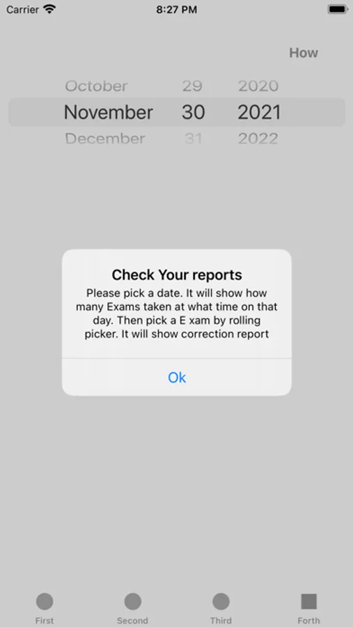 You can view reports by picking up date. Then rolling to what time you started exam on that date.