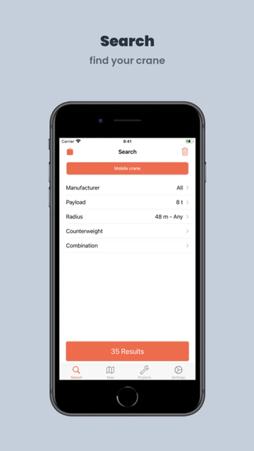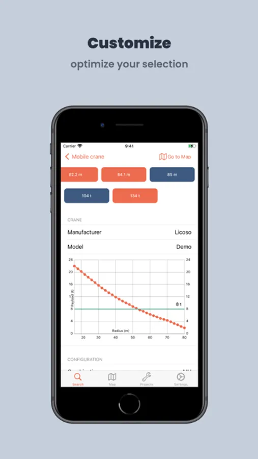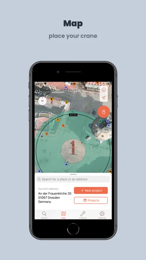 To be able to plan a crane deployment, you need a versatile, precise and extensive preparation. Select the right crane for your project using the search function and place/integrate it in a map as you wish and with pinpoint accuracy.