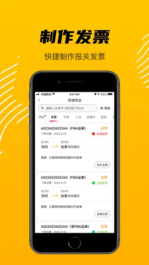 便捷的客户管理,业务员可通过安速货运业务端为客户快捷下单,跟进物流、账单情况,以便为客户提供更优质的服务。