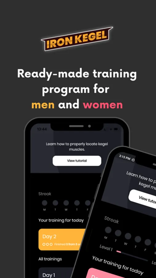 - In the Iron Kegel app, the workout plan adjusts for men and women.