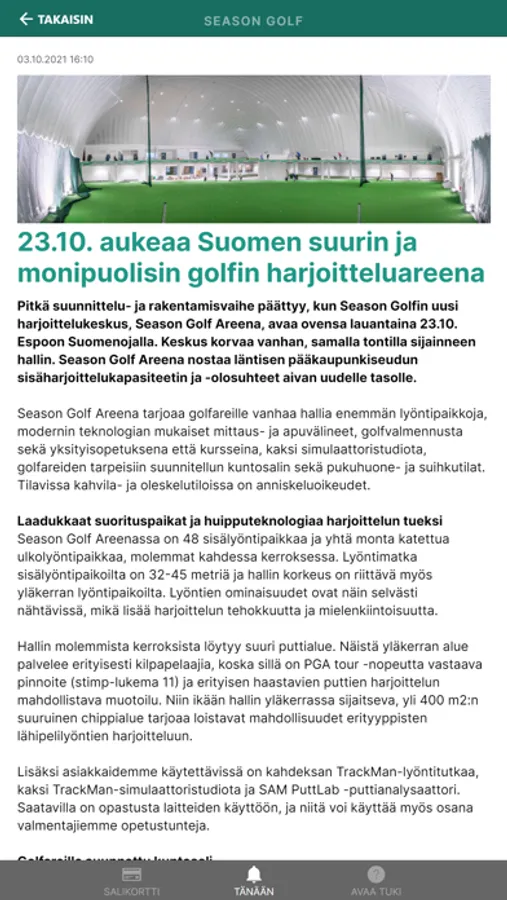 Olit sitten jo Season Golfin jäsen tai vasta sellaiseksi haluava, mobiilisovelluksemme on käyttöliittymäsi meidän palveluihimme. Voit sen avulla aloittaa harjoittelun meillä, käyttää mobiilihallikorttia, viestiä asiakaspalvelumme kanssa ja paljon muuta!