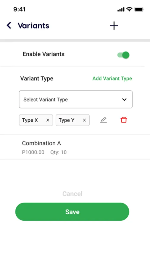 - Manage product variants (size and color options)