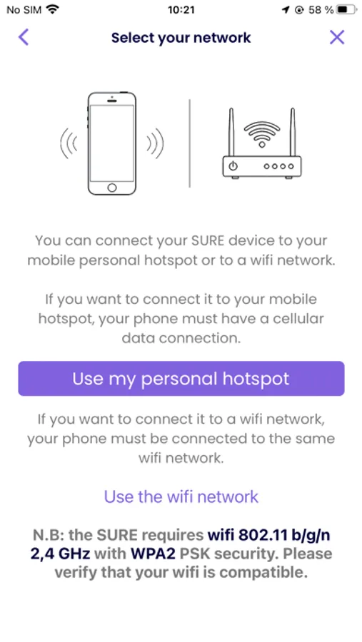 The SURE scanner is able to connect to a wifi network or a personal hotspot, as long as it supports wifi 802.11 b/g/n 2.4 GHz.