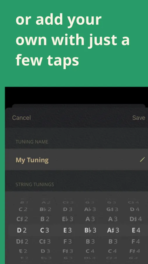 Choose from over 100 built-in tunings, from Open D to DADGAD to Hawaiian Slack Key. Or build your own tuning, customizing each string, and discover thousands of new chords and scales.