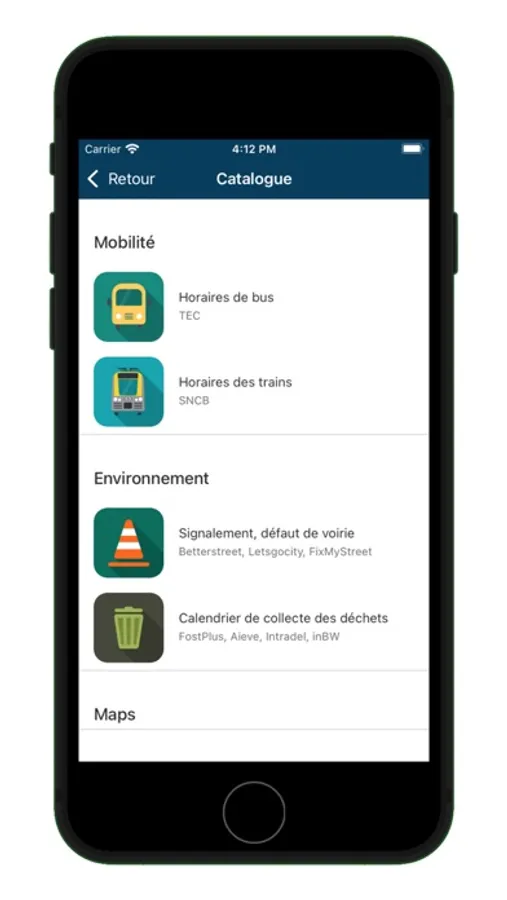 Après son installation, vous découvrirez la liste de l’ensemble des services accessibles depuis votre smartphone :