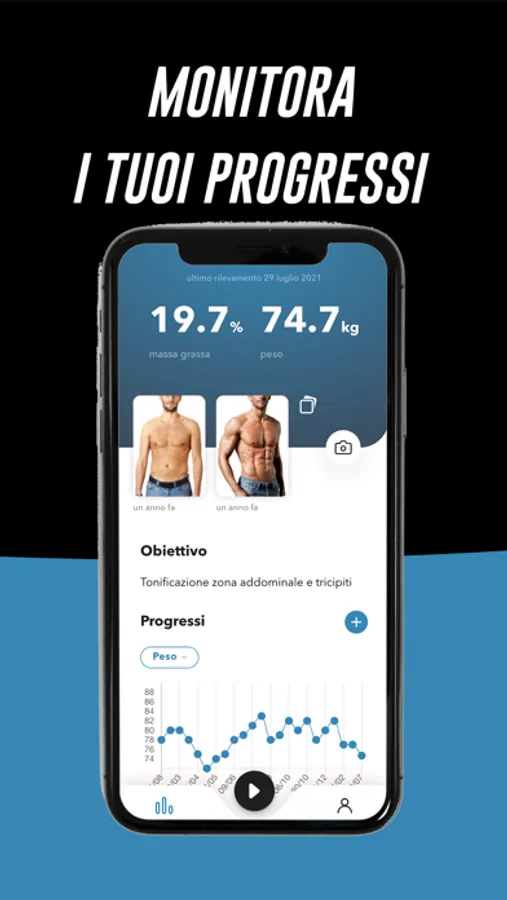 Avrai sempre sotto controllo la tua attività fisica: potrai visualizzare quali esercizi sono previsti nel tuo piano di allenamento, i tuoi progressi e come cambia il tuo fisico nel corso del tempo.