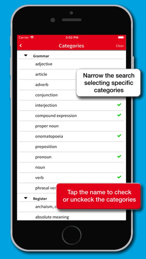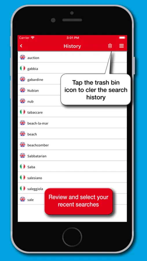 • In Portrait mode, ability to scroll the definitions to the right to return to the list of entries or search results
