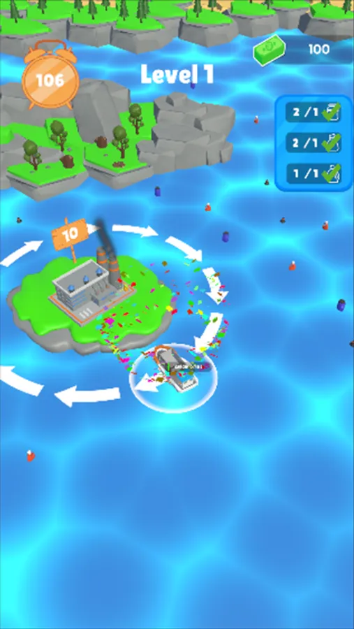 We collect waste materials that have been poured into the sea with our green ship.We must work for a green environment by leaving the garbage we collect in recycling factories on some islands.As the levels progress, we can increase our ship's equipment. With the money we collect, we can buy new hardware or even buy new recycling islands.