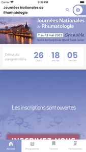 Les Journées Nationales de Rhumatologie auront lieu du 11 au 13 mai 2023 à Grenoble au Centre de Congrès du World Trade Center. Cette application vous sera indispensable pour préparer votre congrès, découvrir le programme, retrouver les intervenants, assister aux lives, interagir en séance, poser des questions, voter et bien sûr, retrouver les sessions en replay !e 35ème Congrès de la Société Française de Rhumatologie aura lieu du 11 au 13 décembre 2022 à Paris au Parc des Expositions de la Porte de Versailles – Hall 7.3. Cette application vous sera indispensable pour préparer votre congrès, découvrir le programme, retrouver les intervenants, assister aux lives, interagir en séance, poser des questions, voter et bien sûr, retrouver les sessions en replay !