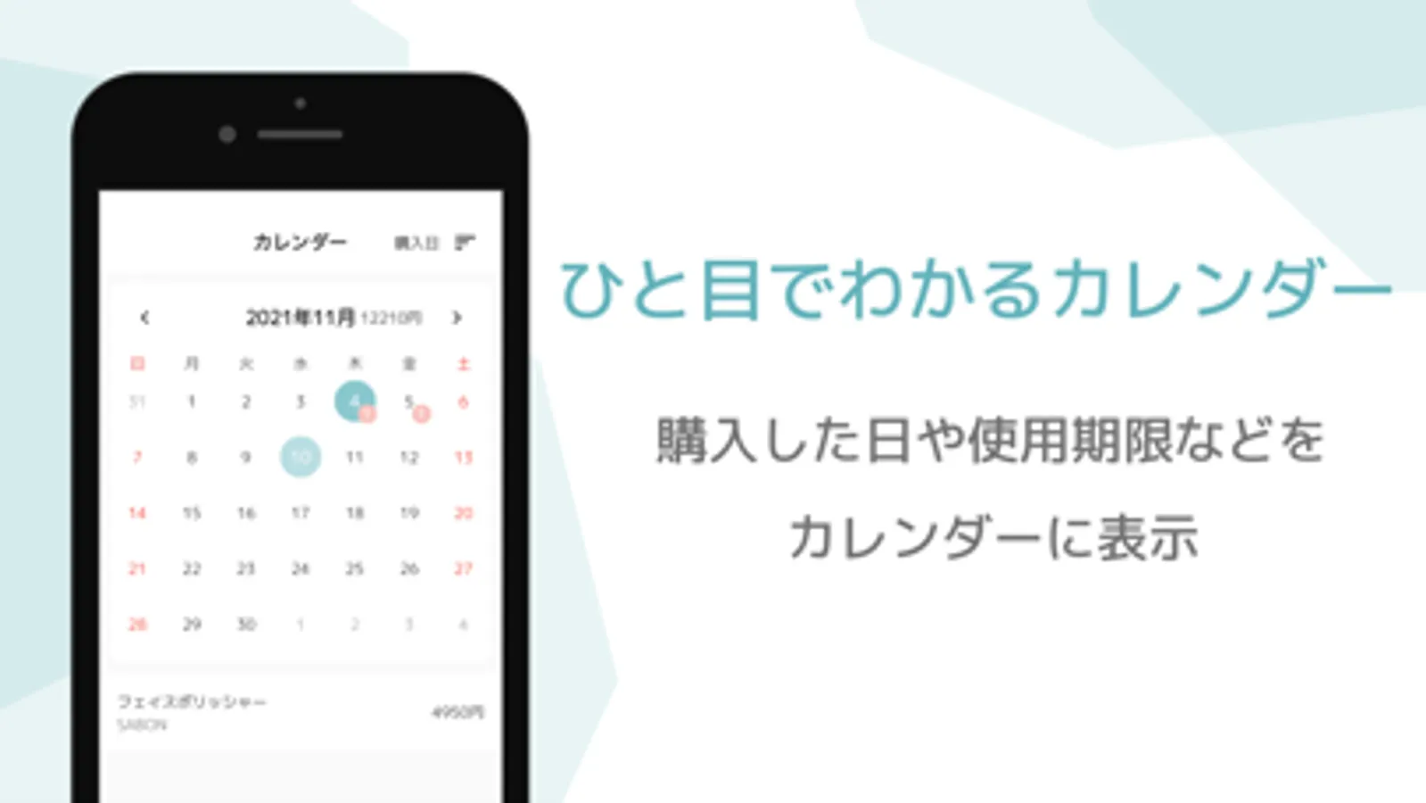 *【mycos】のカレンダー機能で購入日、開封日、有効期限が一目でわかる!