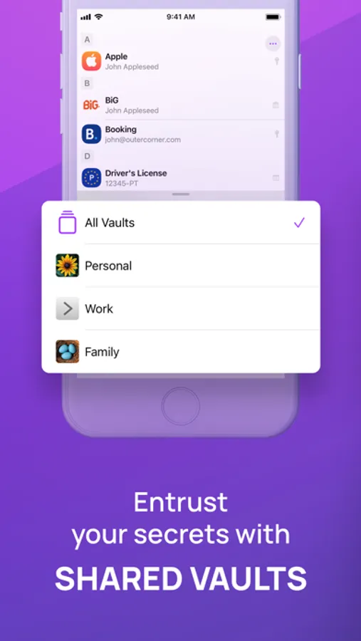 - Unlock shared vaults so you can invite someone else to access your saved items.