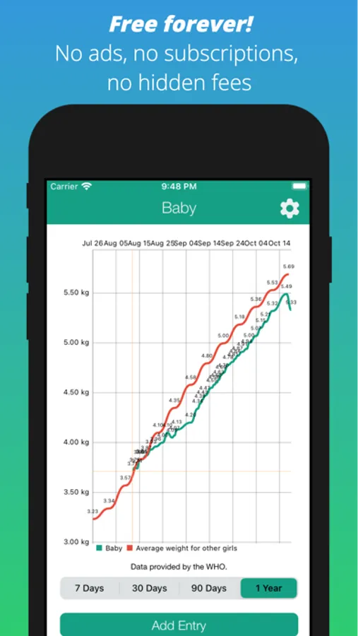 No fluff or "modern" features. Just track your baby weight throughout the days.