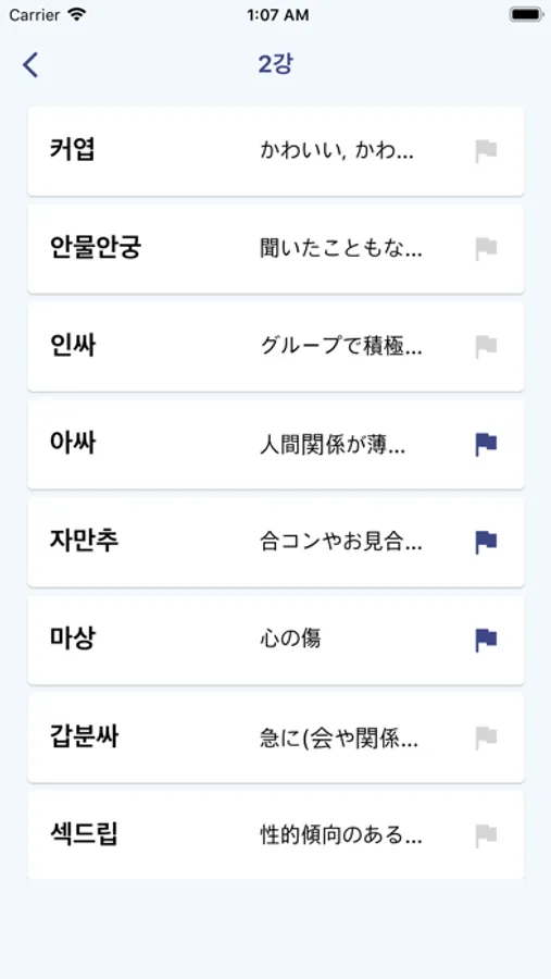 特に、TOPIKの単語だけでなく、韓国語の方言、辞書にはない日常会話で使われる単語や表現, ドラマの単語、韓国人も紛らわしい単語まで提供し、本当に韓国人のような単語を勉強できるようサポートしてくれます。