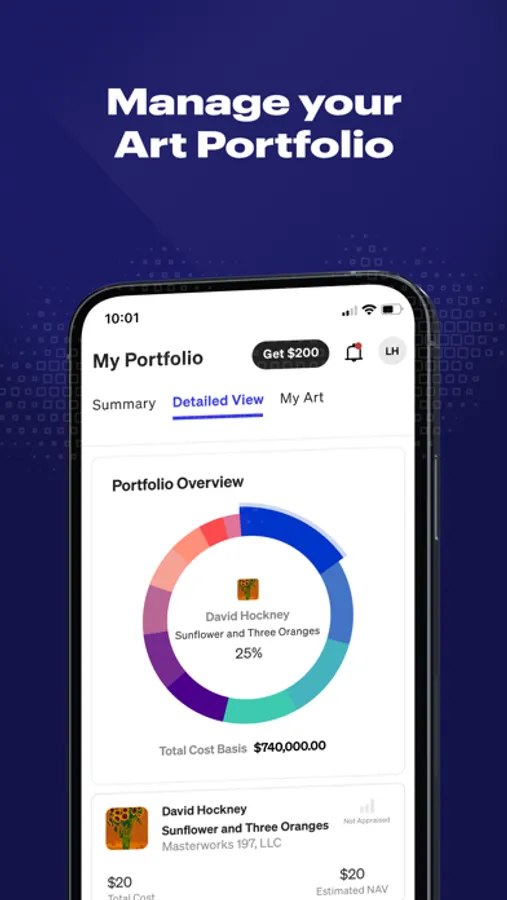 Our team of art experts carefully curates and researches each artwork to ensure its authenticity, provenance, and potential value. You can invest in a piece for as little as $20 and watch your investment grow over time. Plus, with the artwork itself serving as collateral, you can be sure your investment is secure.