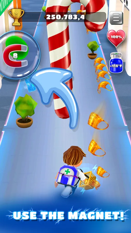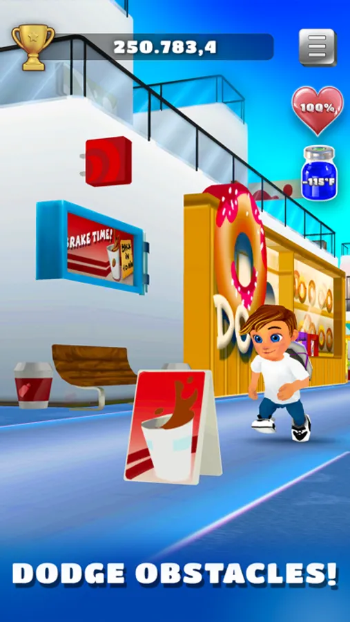 Help Benjamin DODGE and DASH the obstacles, PUT masks and SMASH some unworthy pedestrians while racing for the ICE!