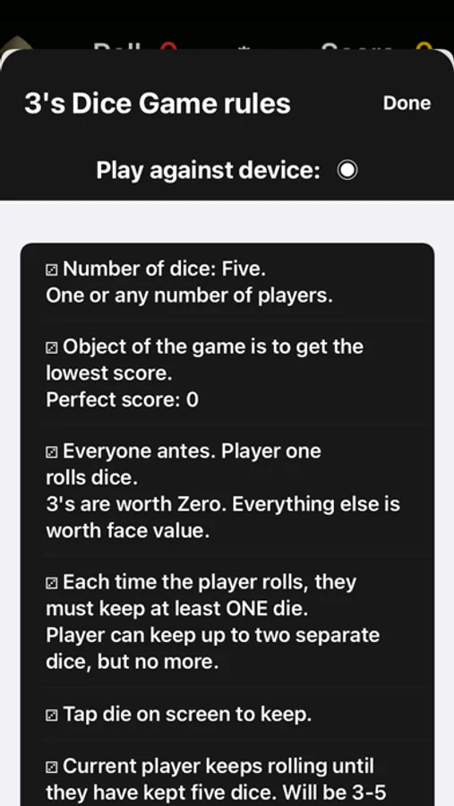 Play 3's (Threes) Dice with game rules applied by Roller Dice app.