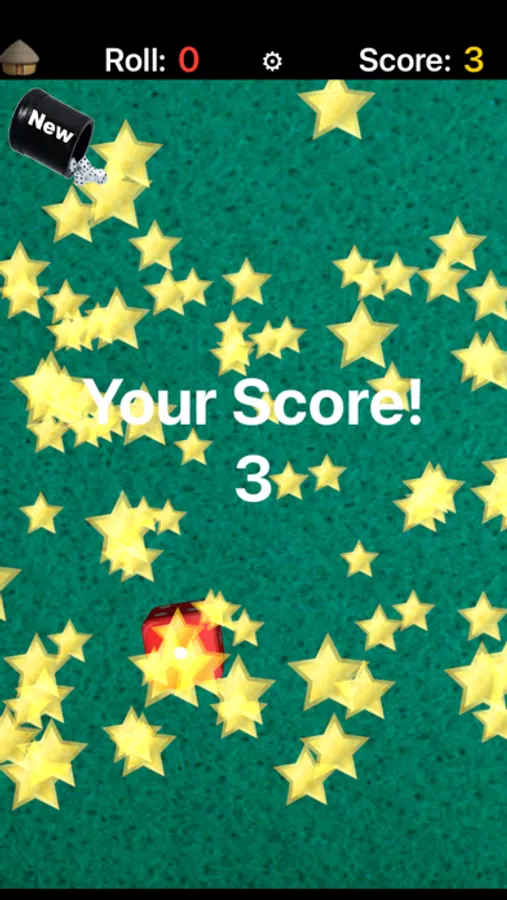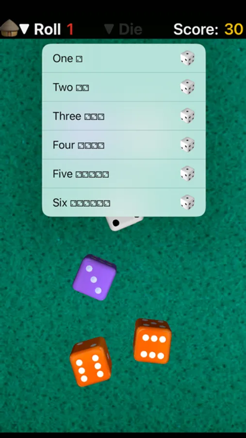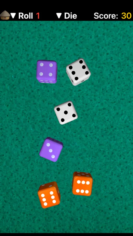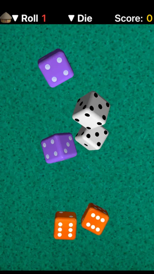 If after a roll is complete a die comes to rest on top of another die, drag your finger to rotate the dice and tap to remove die if desired.