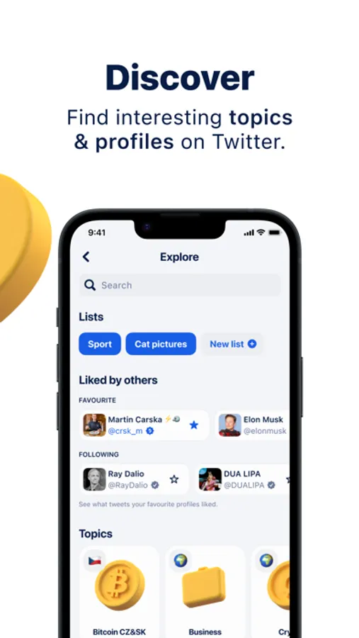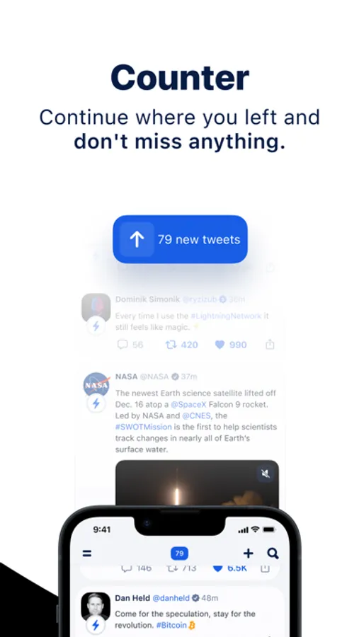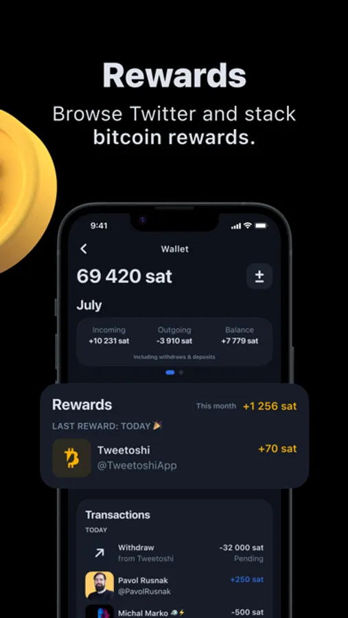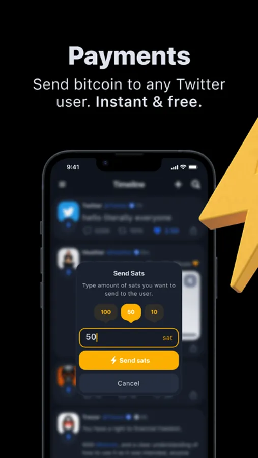Follow news from around the world and support other users with Bitcoin. Reward friends, tech-leaders or celebrities with Sats and support them in their next Twitter activity.