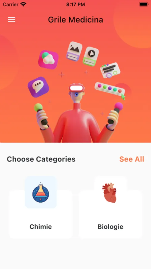 Aplicația conține peste 1000 întrebări pentru fiecare categorie. În viitor dorim sa adăugăm testarea la nivel de capitol.