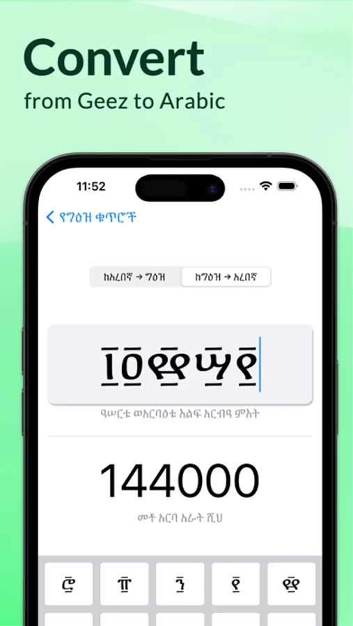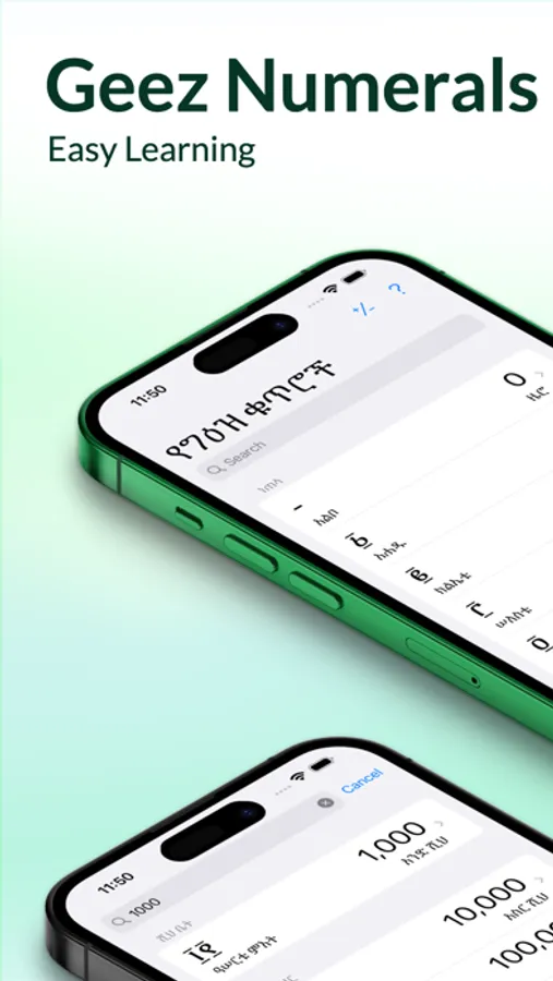 This application includes the full list of Geez Numerals with the corresponding Arabic numerals for reference. We've also added a convertor to make an easy conversion between this two number systems.